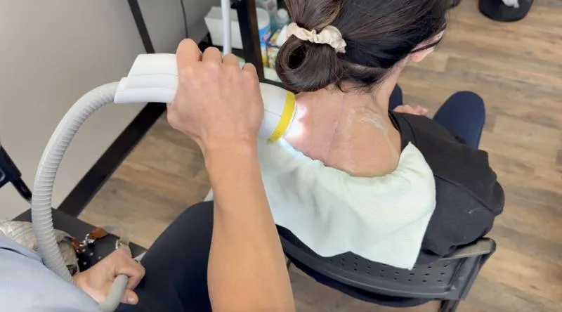 It uses energy waves to penetrate deep into the tissue to promote blood flow, circulation, reduce inflammation and eliminate pain while also stimulating the migration of your body’s stem cells for long-term healing.